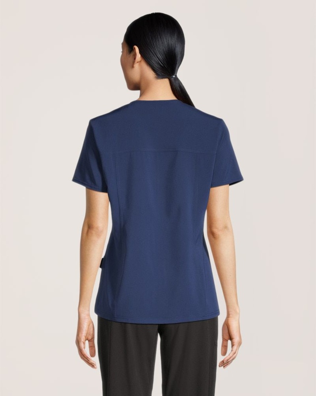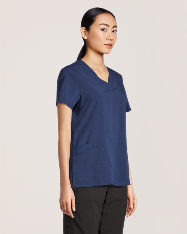 Ce haut d'uniforme médical de Scrubletics a une allure professionnelle et sportive. Il est doté de fentes latérales et de panneaux latéraux en tricot perméable à l'air pour plus de confort et de flexibilité. De plus, il est muni de trois poches, dont une poche dédiée pour téléphone cellulaire, pour garder vos articles essentiels de travail à portée de main.