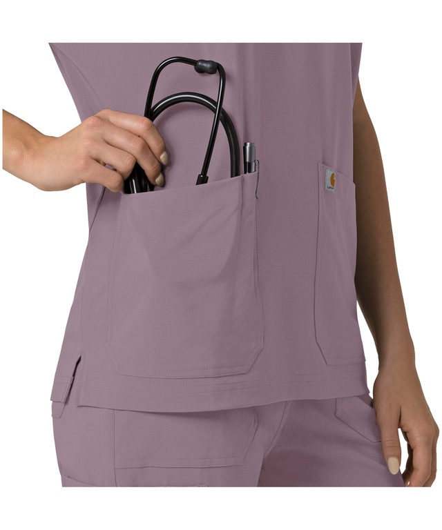 Partez du bon pied au travail avec assurance dans le haut d'uniforme médical surdimensionné de Carhartt à encolure en V pour femmes. Conçu pour les professionnelles de la santé, ce haut d’uniforme médical joint l’élégance à la fonctionnalité. La technologie FastDryMD vous permet de vous sentir à l'aise toute la journée. L’encolure en V incurvée à bordage étroit et à boucle à pièce d'identité sur l’épaule ajoute une touche raffinée, tandis que l’empiècement à fente assure la perméabilité à l’air pendant les longs quarts de travail.