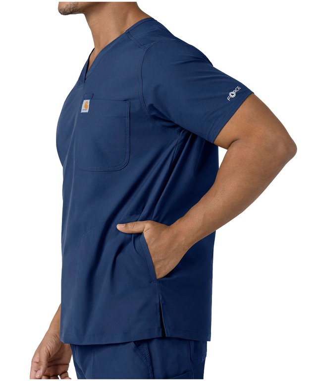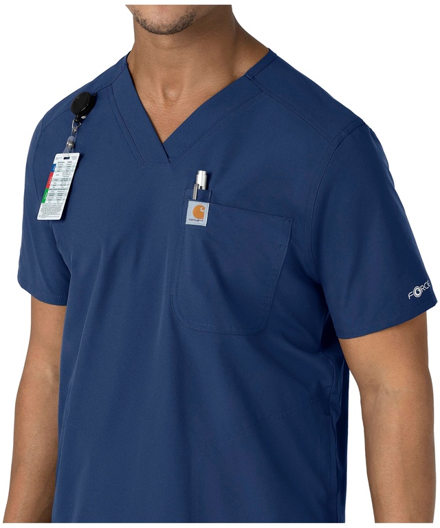 Ce haut d’uniforme médical Force Essentials de Carhartt pour hommes propose une coupe moderne qu’on peut rentrer dans le pantalon et le style classique d’encolure en V que les hommes adorent. Il a un ourlet pan de chemise arrondi, des fentes latérales à l'ourlet et des plis d’aisance arrière pour une meilleure amplitude des mouvements. Les technologies FastDryMD et Stain BreakerMD de la marque font de ce haut un excellent choix pour le confort pendant les quarts de travail occupés.