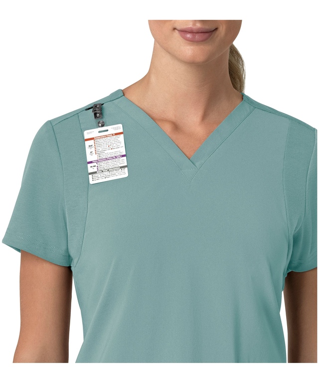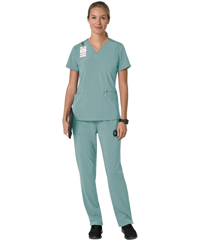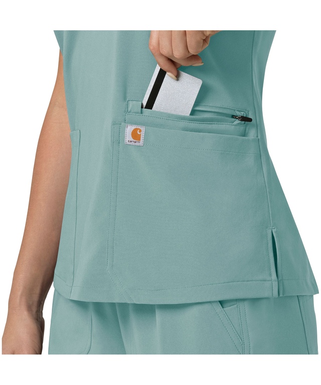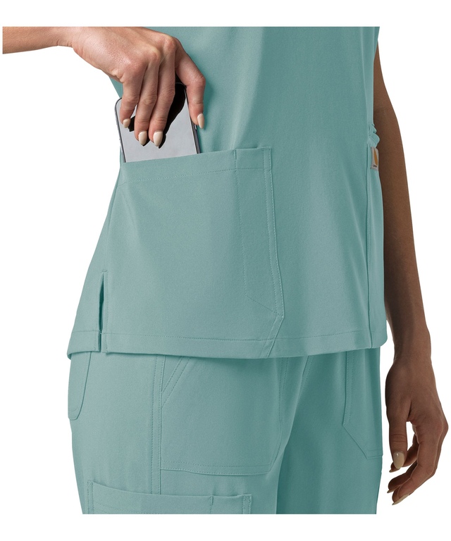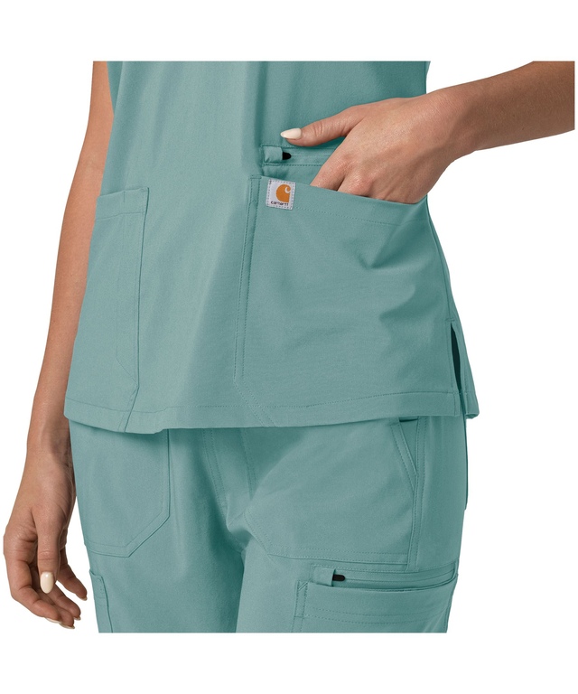 Le haut d'uniforme médical de Carhartt à encolure en V et à panneaux flexibles pour femmes est fabriqué à partir d'un tissu en polyester résistant et confortable avec la technologie extensible Rugged FlexMC caractéristique de Carhartt. Il garantit un mouvement sans restriction, quelle que soit votre activité. Les empiècements en tricot côtelé aux épaules et aux manches, ainsi que le dos nageur, offrent une aisance de mouvements, ce qui rend votre travail plus facile à gérer.