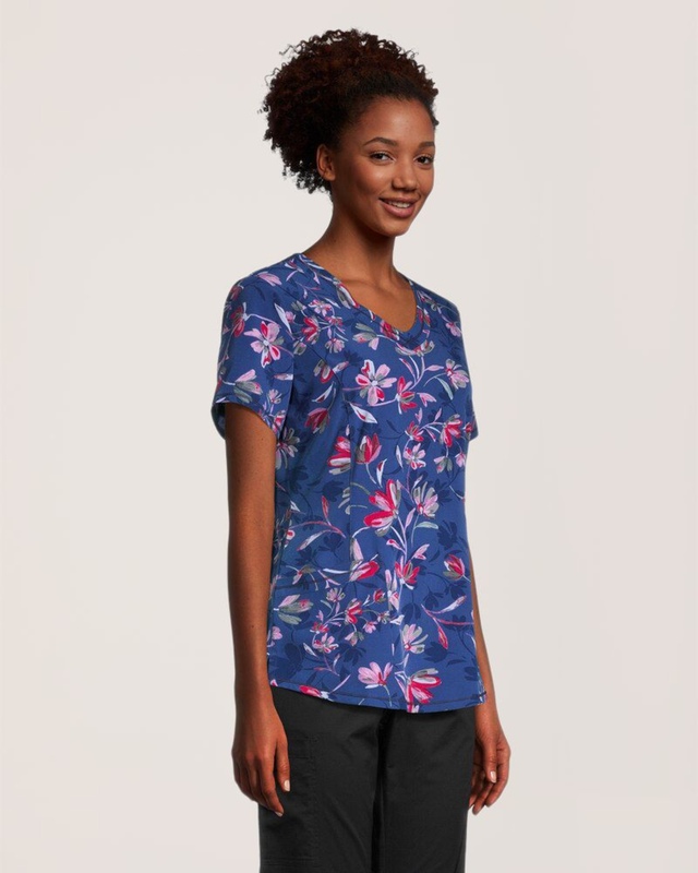 Ce haut d'uniforme médical à encolure en V de HEALTH PRO vous procurera confort et agrément lors de vos quarts de travail. Il est perméable à l’air et extensible dans 2 sens pour offrir une meilleure aisance de mouvements et est très doux au toucher pour un confort qui dure toute la journée. Notre haut d'uniforme médical de Scrubletics à encolure en V pour femmes a une coupe étroite contemporaine profilée pour épouser et agrémenter les formes de votre corps. Vous y trouverez des coutures décoratives, des coutures princesse produisant un galbe féminin ainsi que des pinces arrière qui avantagent la silhouette.