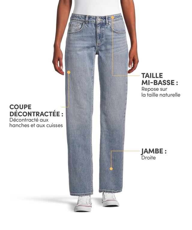 Un excellent ajout à votre garde-robe, notre jean de Denver Hayes à taille mi-basse et à coupe ample est décontracté au niveau des hanches et des cuisses avec une jambe droite plus large. Si vous recherchez une apparence et une sensation plus amples et plus souples, choisissez une taille au-dessus.