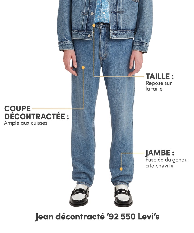 Repensez un moment à l'année 1992. C'était une fort belle année. À l'époque, vous passiez probablement beaucoup de temps sur une planche à roulettes. Et si vous étiez sur une planche à roulettes, vous vous souvenez peut-être du jean pour hommes 550 '92 de Levi's. La coupe rétro de ce jean bleu original nous rappelle la culture du skate du début des années 90. Or, ce style convient tout aussi bien aux hommes d'aujourd'hui. Alors, portez-le et créez de nouveaux souvenirs. Incidemment, ce jean est le plus récent modèle de la famille 550 qui respecte la coupe originale de 1992. Qui plus est, Levi's Premium est synonyme de savoir-faire supérieur et de souci du détail. Notre but : magnifier la qualité de nos modèles emblématiques afin qu'ils deviennent intemporels.