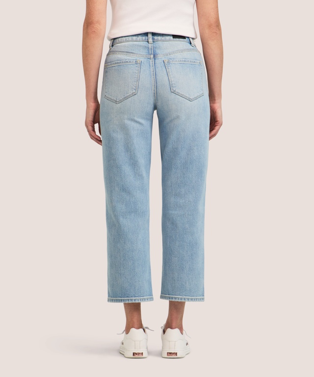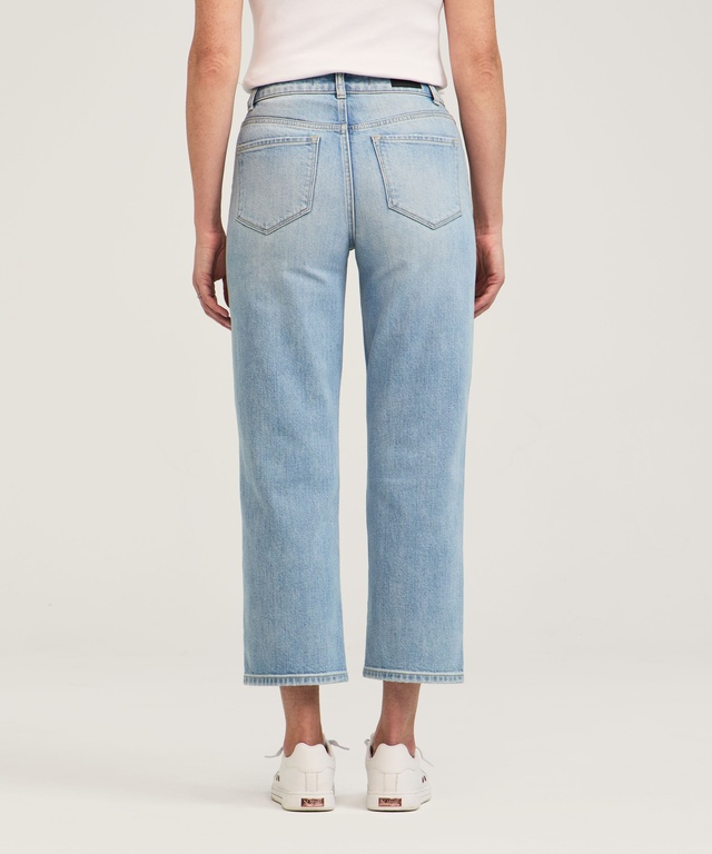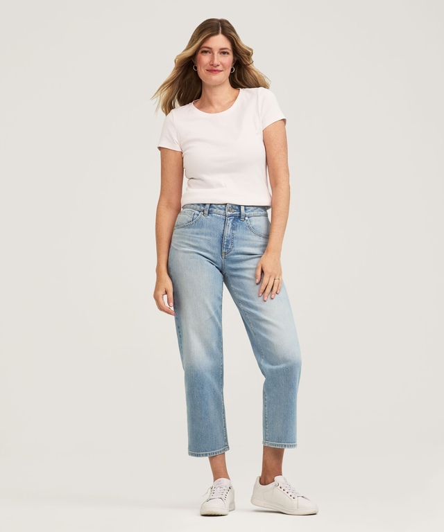 Notre jean court à jambe droite et à taille haute Denver Hayes pour femmes est doté d’une ceinture contour qui empêche le bâillement à l'arrière. Avec ses poches avant amincissantes, ce jean vous donnera assurément du style.