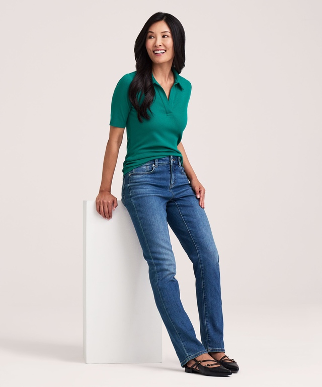 Conçu pour les silhouettes plantureuses, ce jean à jambe droite de Denver Hayes est un peu plus ample à la hanche et à la cuisse pour plus de confort. Il possède une bande contour à la taille qui prévient le bâillement à la ceinture. En outre, il intègre une technologie novatrice qui amincit le ventre et possède une extensibilité accrue contribuant ainsi à mettre vos courbes en valeur.