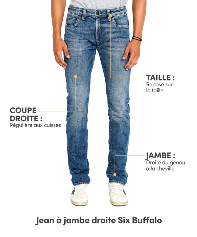 Issu de la collection Authentic Western Wear de la marque, ce jean à jambe droite Six de Buffalo pour hommes affiche une allure rétro avec son denim froissé au fini sablé et hachuré croisé. Ce style à jambe droite offre la bonne quantité d'extensibilité avec un fini légèrement usé sur l’ensemble.