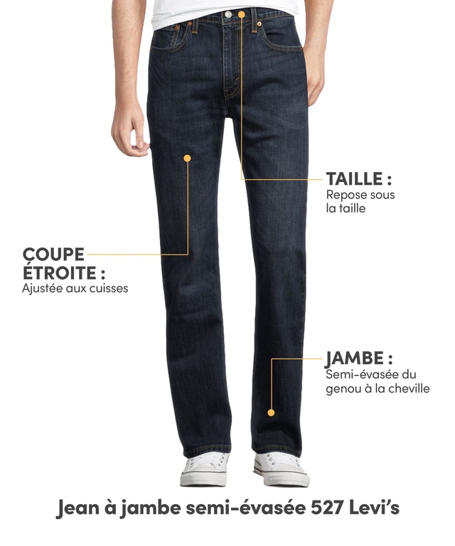 Les jeans semi-évasés reviennent en force et en beauté. C'est pourquoi Levi's a choisi de réintroduire le jean classique étroit et semi-évasé 527 et de lui façonner une coupe légèrement plus étroite. Ce pantalon modernisé deviendra assurément votre préféré.