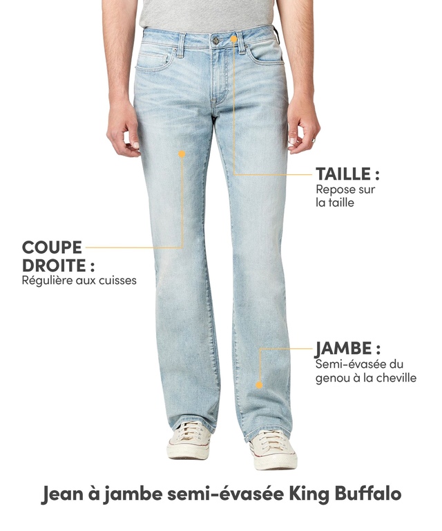 Ce jean Buffalo est une conception rétro pour les temps modernes. Il présente une ouverture semi-évasée au bas et un effet intégral blanchi. Avec un style décontracté aux jambes pour plus de confort, et une décoloration et un effet de moustache importants, il évoque une ambiance des années 90. Le style à cinq poches, la texture riche et juste ce qu'il faut d'extensibilité, ce jean donnera assurément un côté tendance blanchi par le soleil à toute tenue.