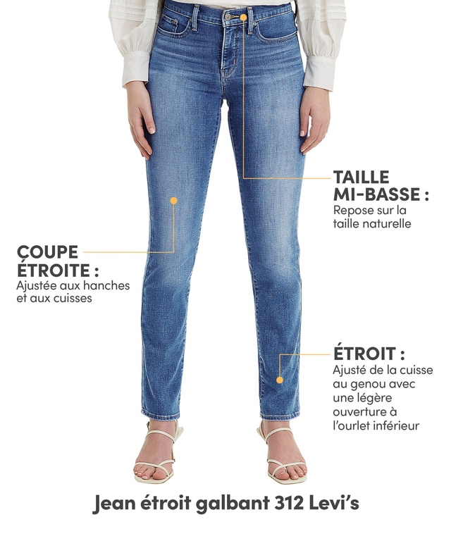 Voici un jean à taille mi-basse conçu pour bien épouser vos formes et les mettre en valeur. Les fibres extensibles ajoutées assurent une reprise de forme maximale pour un confort qui dure toute la journée.