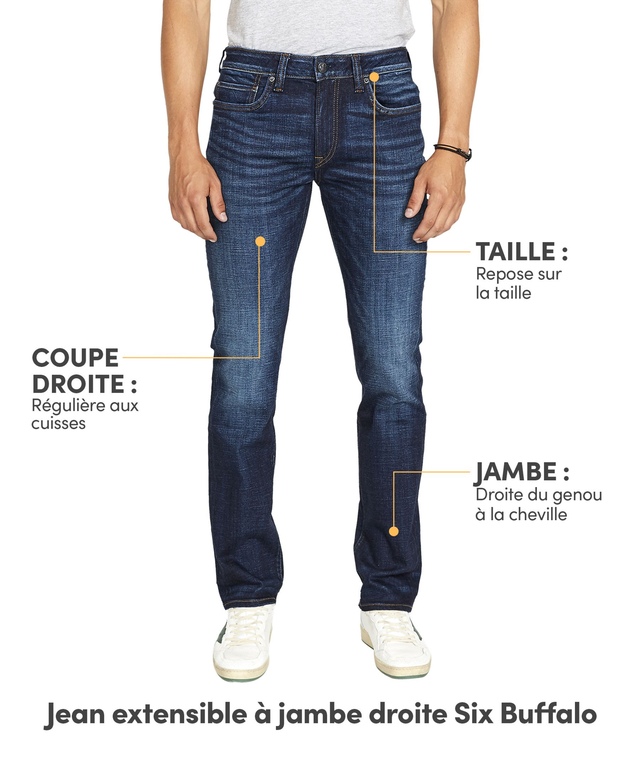 SIX, EXTENSIBLE ET JAMBE DROITE, DÉLAVÉ FONCÉ