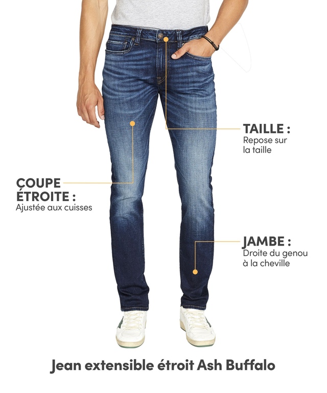 ASH, ÉTROIT ET EXTENSIBLE, DÉLAVÉ FONCÉ