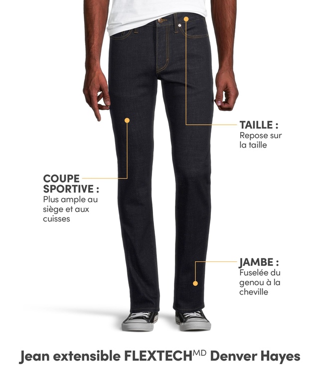 Conçus avec une coupe athlétique, ces jeans Denver Hayes vous donnent un peu plus d'espace au fessieur, aux cuisses et les jambes sont légèrement fuselées. La bande FLEXTECH® sur 360° garantit un ajustement incroyable. Cette conception offre un style classique de jeans qui comprend une braguette à glissière et cinq poches. Ces jeans à teinte foncée sont une addition logique à votre collection d'articles décontractés.