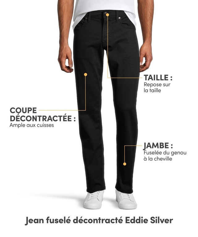 De style décontracté, les jeans Eddie Silver reposent juste en-dessous de la taille et comprennent plus d’espace dans les fessiers et les cuisses. Ils sont conçus avec un peu plus d’extensibilité pour une sensation confortable. Cette paire est offerte dans des lavages de diverses couleurs, des motifs à moustaches et un peu de décoloration pour un allure usé. Les jeans sont complets avec une jambe fuselée moderne et des coutures emblématiques de la marque sur les poches arrière.