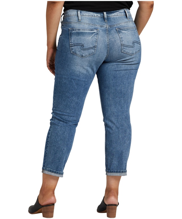 En ligne seulement. Le jean boyfriend de Silver Jeans à taille mi-basse et à jambe étroite en taille plus fait valoir vos formes tout en vous procurant une allure et une sensation de détente. Conçu pour les silhouettes plantureuses, le jean de coupe boyfriend propose une taille mi-basse classique et confortable qui n'affiche aucun bâillement. Sa coupe ample aux hanches assure un confort optimal. De plus, son tour de jambe étroit façonne une silhouette flatteuse.