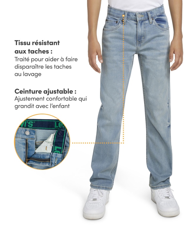 Le jean Performance unisexe pour jeunes de Levi’s est conçu pour garder votre enfant bien au chaud en tout confort. En outre, il est confectionné pour offrir plus d'aisance de mouvements. Ce jean de coupe étroite est muni d'une ceinture ajustable, d'une braguette à fermeture à glissière et affiche l'étiquette de la marque sur la poche arrière.