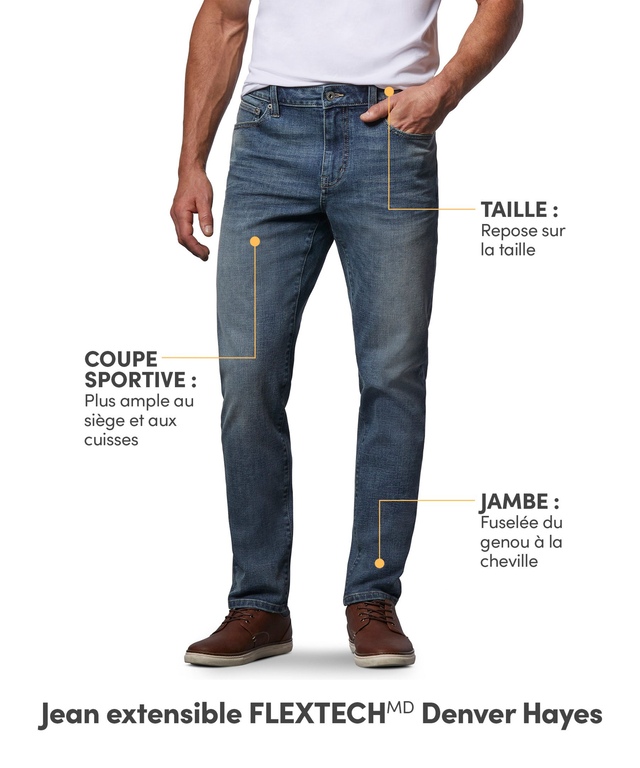 Conçus avec une coupe athlétique, ces jeans Denver Hayes pour hommes vous donnent un peu plus d'espace au fessier et aux cuisses. Les jambes sont légèrement fuselées. La taille FLEXTECH sur 360° garantit un ajustement parfait. Cette conception offre une style classique pour jeans tout comme la braguette à glissière et les cinq poches. Faciles à laver à la maison, ces jeans à teinte claire sont une addition logique à votre collection d'articles décontractés.