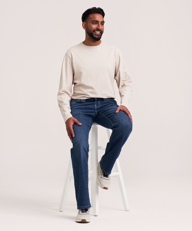 Passez la journée sans effort avec ces jeans Denver Hayes extensibles, décontractés et confortables pour hommes. La couleur à teinte foncée et le style classique à cinq poches améliore votre allure et vous permet à jumeler ces jeans avec tout. La technologie Flextech® guarantit que votre taille vous convient et les fibres LYOCELL aident à prévenir les plis et à retenir la durabilité du tissu lorsqu'il est mouillé ou sec.