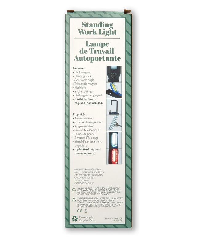 Lorsque vous travaillez dans des espaces restreints, cette lampe autoportante est idéale pour éclairer exactement là où vous en avez besoin. Vous pouvez la poser sur une table, une étagère ou sur le sol. Sa base magnétique et son crochet de suspension ajoutent de la commodité.