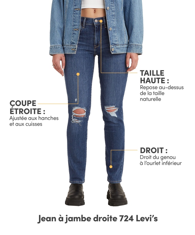 Levi's modernise votre taille haute favorite avec une coupe étroite et une jambe droite ultramoderne. Le jean 724 à taille haute est conçu pour mettre en valeur, maintenir et rehausser toute la journée et tous les jours.
