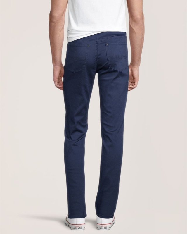 Ce pantalon à jambe droite Brad de Lois est fait de tissu extensible bleu. Il a une taille régulière, une coupe droite confortable au siège et aux cuisses, et une jambe étroite. Lois a ajouté un élastique à la ceinture pour améliorer l'ajustement et le pantalon affiche un style à cinq poches, comme votre jean favori.