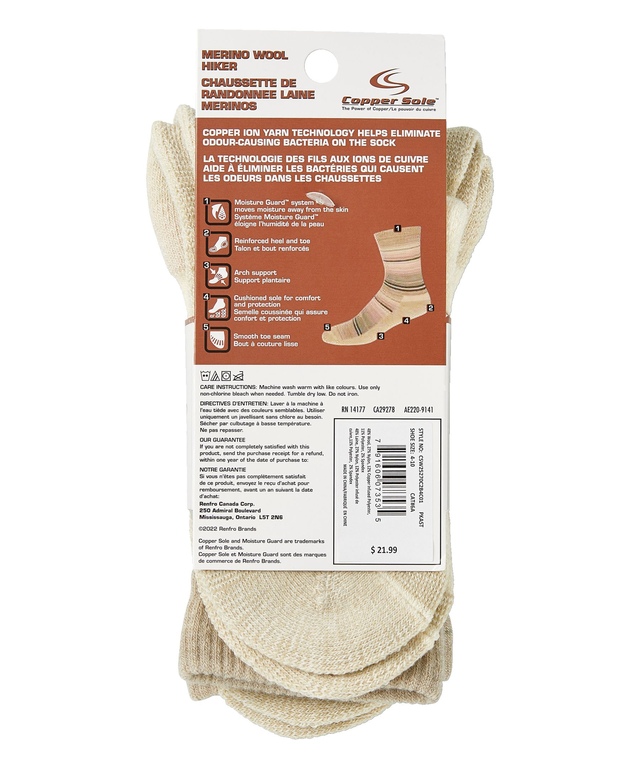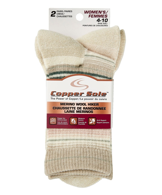 Des ions de cuivre sont tissés dans le fil de ces mi-chaussettes en laine mérinos de Copper Sole pour femmes pour éliminer naturellement les bactéries qui causent les odeurs et pour évacuer l'humidité. Ils ont un soupçon d'extensibilité pour un meilleur ajustement et plusieurs caractéristiques pour un plus grand confort.