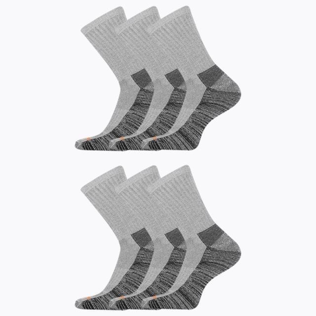 Ce paquet de six paires de mi-chaussettes de travail de Merrell pour hommes est parfait pour un usage de tous les jours au travail. Le pied entièrement rembourré amortit les chocs sur les terrains accidentés et la technologie de gestion de l’humidité garde les pieds au sec. Le renforcement au talon et à la pointe assure la solidité, tandis que la bande de soutien de voûte plantaire combat la fatigue des pieds. De plus, la technologie antiodeurs offre une protection pendant une utilisation prolongée.