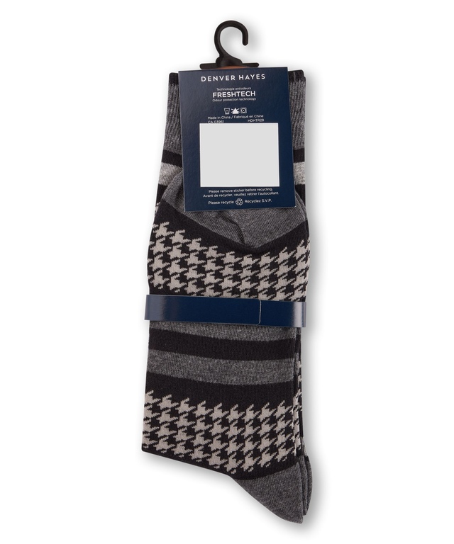 Des motifs géométriques attrayants ornent ces mi-chaussettes polyvalentes pour hommes de Denver Hayes. Les chaussettes pour hommes sont faites de fibre de coton peigné douce pour un confort qui dure toute la journée et elles sont dotées de la technologie FRESHTECHMD qui aide à combattre les odeurs.