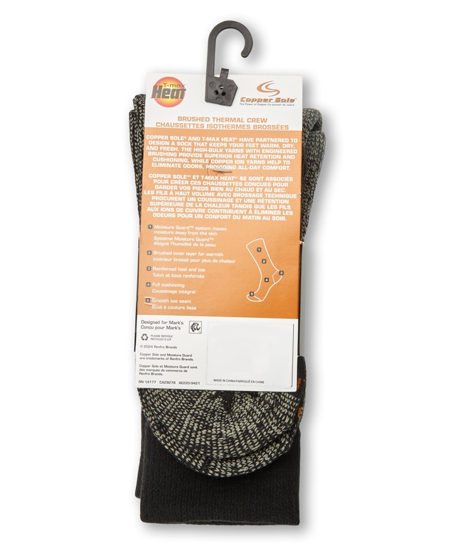 Pendant vos activités de plein air, gardez vos pieds chauds et douillets avec ces mi-chaussettes isothermes Copper Sole. Elles sont dotées de notre technologie T-MAX HEATMD qui fournit la chaleur et de la technologie d'ions de cuivre de Copper Sole qui aide à éliminer les odeurs. Les caractéristiques de confort supplémentaires comprennent des coutures sans frottement aux orteils et un rembourrage sous le pied.