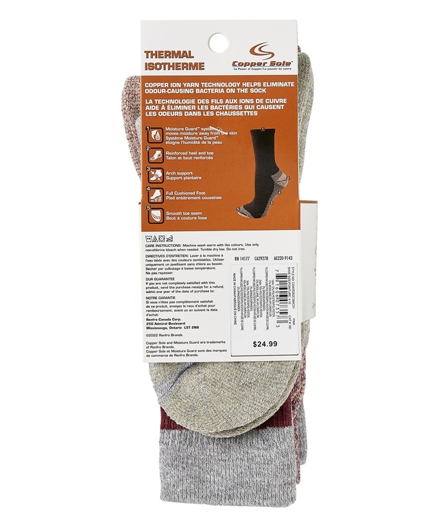 Ces mi-chaussettes isothermes de Copper Sole sont dotées d'ions de cuivre tissés qui éliminent naturellement les bactéries qui causent les odeurs. Elles intègrent un traitement qui éloigne l'humidité de la peau pour que vous restiez au sec et confortable. Ces chaussettes perméables à l'air offrent également plusieurs autres caractéristiques pour améliorer le confort.