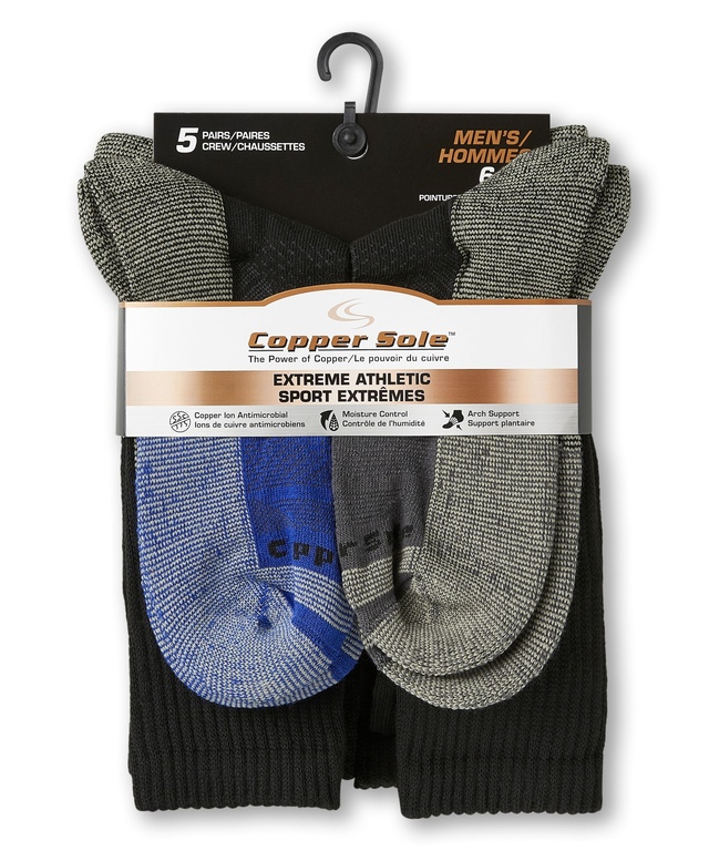 Mi-chaussettes pour hommes, Extreme Athletic, Copper Sole, paquet de 5 paires