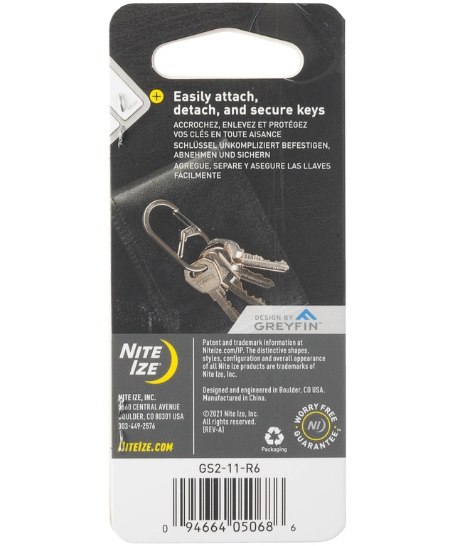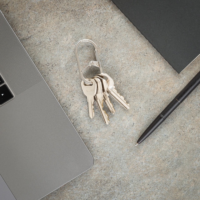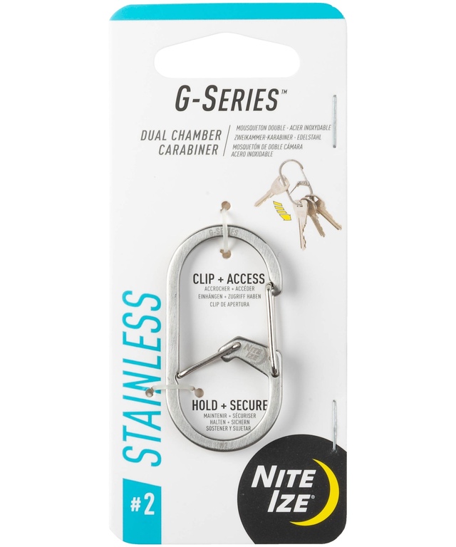 Le mousqueton porte-clés en acier inoxydable G-Series 2 de Nite Ize possède deux chambres. La première sert à fixer cet accessoire à votre sac ou à votre ceinture. La deuxième sert à maintenir les clés sécuritairement grâce à une porte de fermeture en acier qui prévient le désengagement accidentel. Ce porte-clé peut accueillir presque tous les types de clés fabriquées ici ou à l'international.