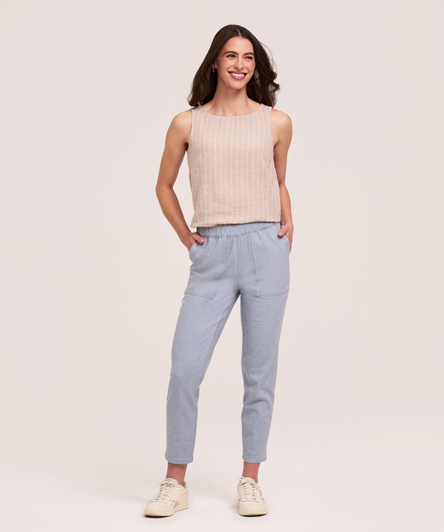 Le pantalon Ankle Grazer de Denver Hayes est constitué d'un mélange de lin qui convient parfaitement aux chaudes journées d'été. Ce pantalon facile à enfiler est également muni de poches amples et d'une jambe écourtée au niveau de la cheville. Ainsi, vous pourrez mettre en valeur vos nouvelles chaussures ou sandales et serez fin prête pour tout type d'activités.