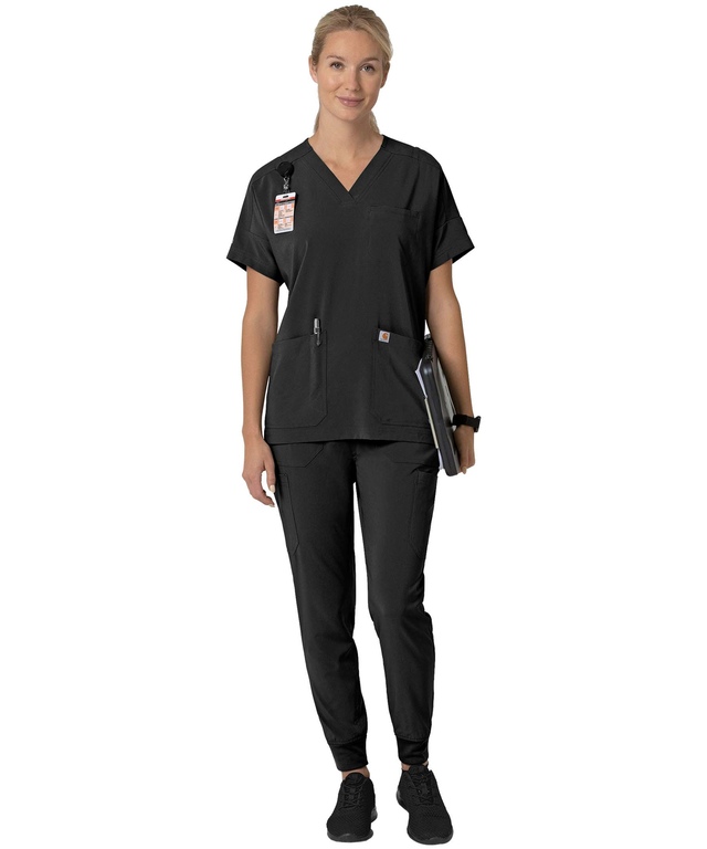 Le pantalon d’uniforme médical cargo Cross Flex de Carhartt de style jogging pour femmes est votre partenaire fiable pour les journées exigeantes dans le domaine médical. Ce pantalon en mélange de polyester et de spandex résistant et confortable offre la flexibilité qu’il vous faut pour gérer facilement n'importe quelle tâche. L’extensibilité intégrée assure le confort et l’aisance de mouvements. Ce pantalon d'uniforme médical de style jogging comporte des revers en tricot côtelé pour un ajustement sécuritaire.