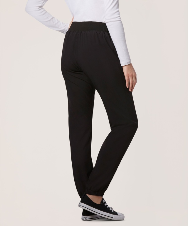 Soyez à l’aise pendant votre quart de travail en portant ce pantalon d'uniforme médical pour femmes de Scrubletics. Le pantalon d'uniforme médical sportif de style jogging est fabriqué dans un tissu en polyester doux extensible pour une meilleure aisance de mouvements. Ce pantalon a une ceinture facile à enfiler et des revers élastiques. Une paire de poches latérales sur le devant offre de la place pour les petits objets essentiels. Dana mesure 1,70 m (5 pi 7 po) et porte ce pantalon d'uniforme médical en taille 4