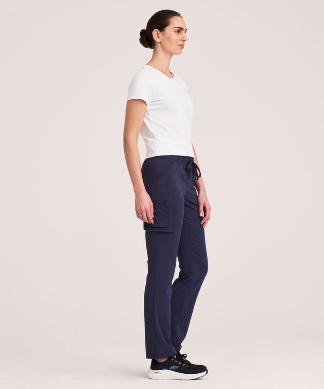 Ce pantalon d'uniforme médical pour femmes de Health Pro Heart possède une taille facile à enfiler dotée d'un élastique et d'un cordon de serrage. En outre, il est muni de six poches offrant un bon espace de rangement pour vos outils et vos articles essentiels au travail.