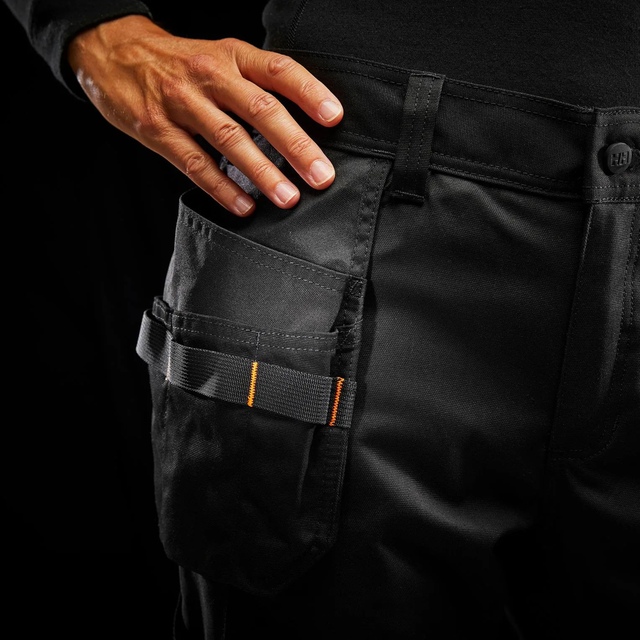 Ce pantalon de travail Luna de Helly Hansen est conçu pour offrir résistance et durabilité au travail. Il a un gousset à l'entrejambe pour une plus grande aisance de mouvements. Elle possède une multitude de poches qui vous permettront de garder vos articles de travail essentiels à portée de main. Ce pantalon accorde une attention particulière aux jambes. Les genoux renforcés et articulés améliorent la durabilité et l'agilité, et les poches genouillères peuvent être accédées de l'intérieur.