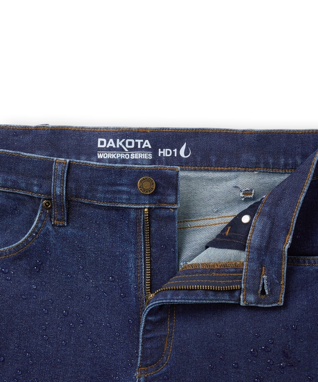 Pantalon de travail en denim à panneau avant unique avec HyperDri HD1 pour hommes, série WorkPro, Dakota