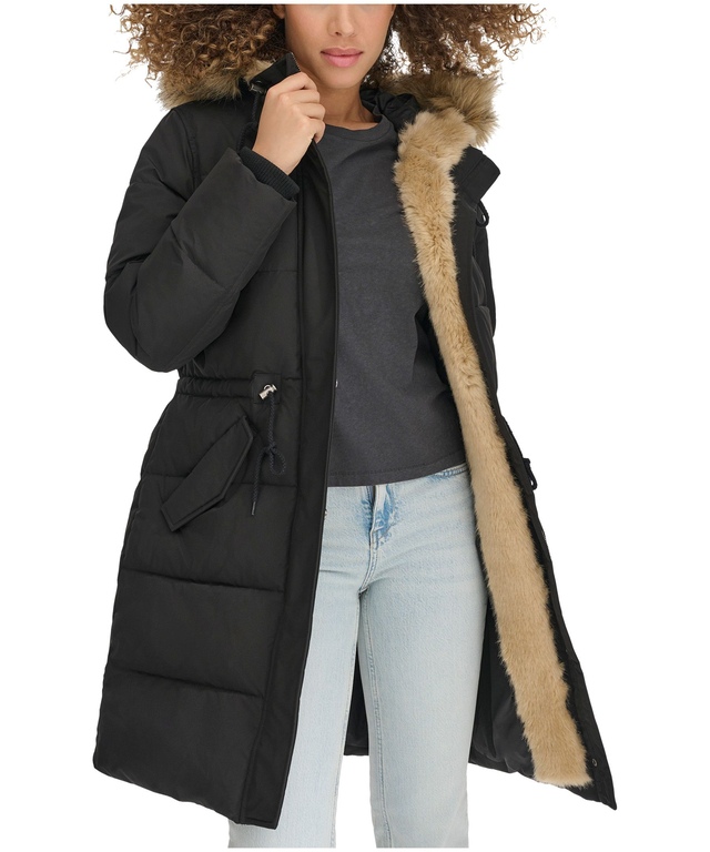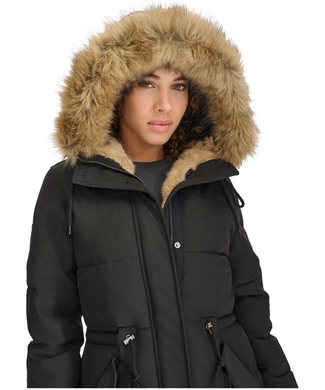 CAPUCHE INTÉGRÉE MUNIE D'UN CORDON DE SERRAGE ET D'UNE GARNITURE EN FAUSSE FOURRURE AMOVIBLE