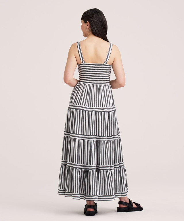 Soyez fin prête pour les brunchs estivaux, les fêtes champêtres et les journées de vacances en portant notre robe longue de Denver Hayes. Ainsi, cette robe fabriquée en tissu doux et confortable convient parfaitement aux longues journées d'été. De plus, elle arbore des rayures d'aspect classique cousues à l'horizontale et à la verticale. Ce vêtement est donc tout désigné pour vos rencontres préférées du matin, du midi et de la soirée.