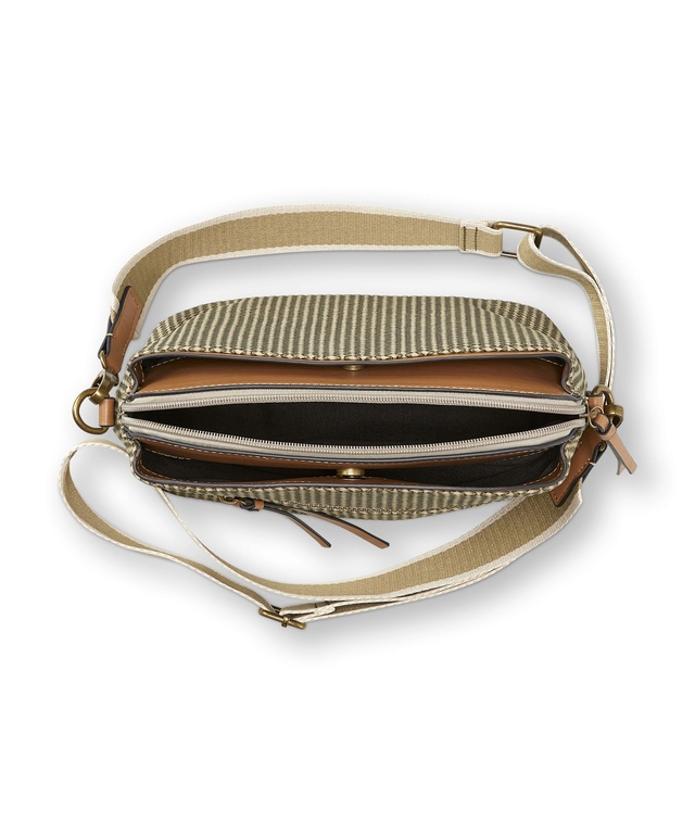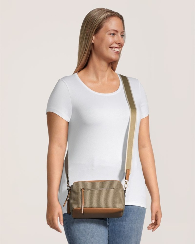 Notre sac à main de Denver Hayes propose un très bel extérieur tissé en couleurs contrastantes. Il dispose de beaucoup de place pour vos essentiels du quotidien grâce à ses trois compartiments et à ses multiples poches. Vous pouvez ajuster la bandoulière amovible pour l’adapter à votre façon préférée de porter le sac.