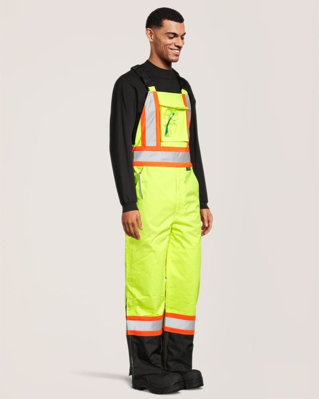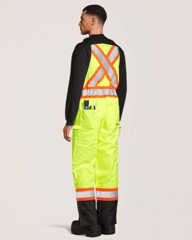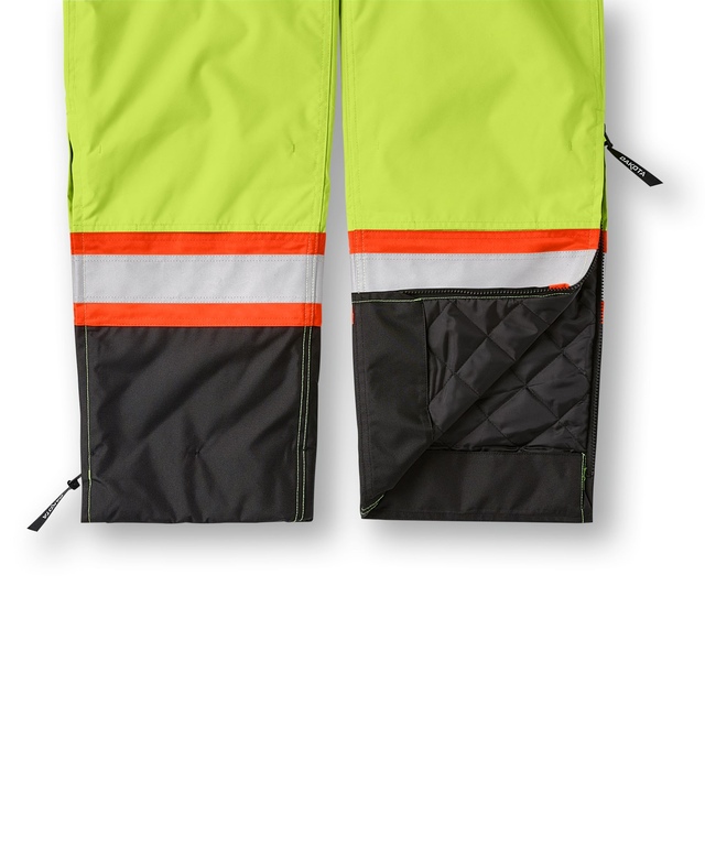 Sécuritaire avant tout : Ruban réfléchissant de 10 cm (4 po) en configuration WCB/Worksafe/DOT, vêtement extérieur entièrement conforme aux exigences suivantes : CSA Z96-09, Catégorie 2, Niveau 2 (correspond à la Catégorie 3 CSA lorsque porté comme pièce d'un ensemble complet avec une veste CSA de Catégorie 2, Niveau 2). ANSI/ISEA 107-2020 Type E.