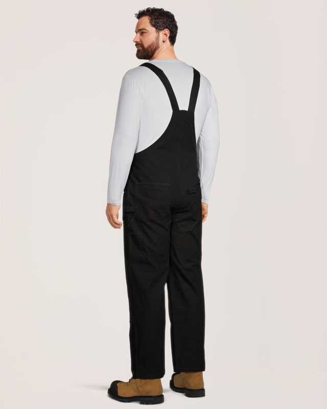 CONÇUE POUR LA DURABILITÉ: Genoux, rebords des poches et bavette avant renforcés avec du tissu polyester enduit de polyuréthane 480 deniers x 500 deniers. Brides d'arrêt à tous les points de tension pour plus de résistance