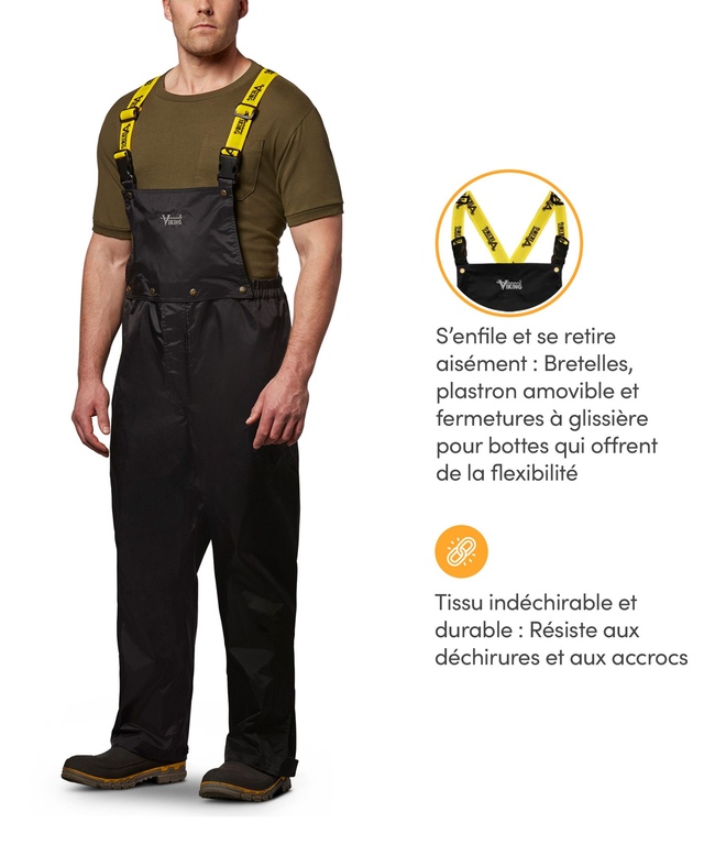 FACILE À ENFILER, COUPE CONFORTABLE: Bretelles élastiques robustes. Bavette amovible. Fermeture à glissière pour accéder aisément aux bottes
