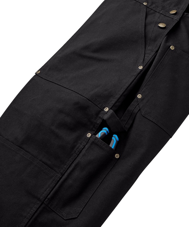 ESPACE DE RANGEMENT: Poche de bavette avec fermeture à boutons pression. Bride pour marteau sur la jambe gauche. Poches pour outils sur la jambe droite. Bride à pinceau sur la poche droite arrière