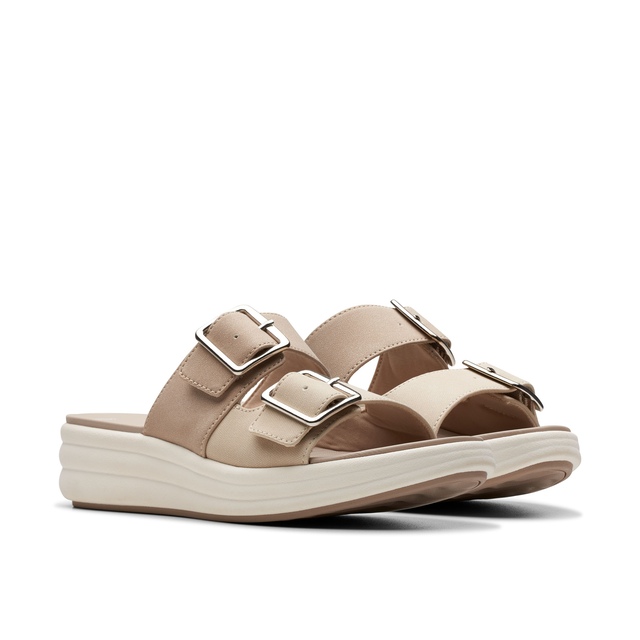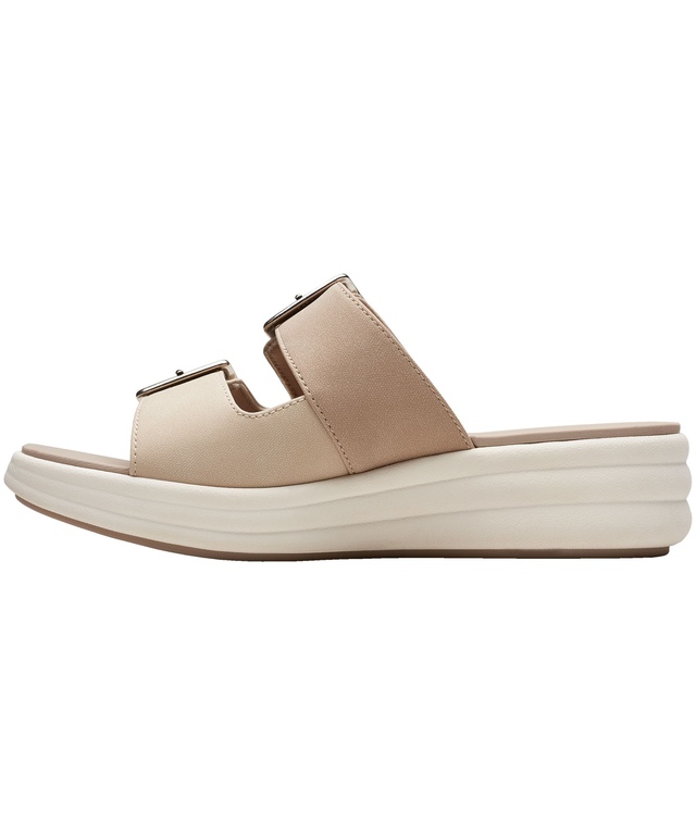 Ces sandales à enfiler à talon compensé Drift Buckle sont le nouvel ajout de la famille Cloudsteppers de Clarks et elles sont prêtes pour les plaisirs de l'été. Ces sandales à enfiler sont dotées d'une tige en toile, d'un dessous en CAV/E léger et d'une assise plantaire en mousse très confortable Extreme Comfort de Clarks. Une doublure qui régule la température garde vos pieds frais, peu importe le degré de chaleur.