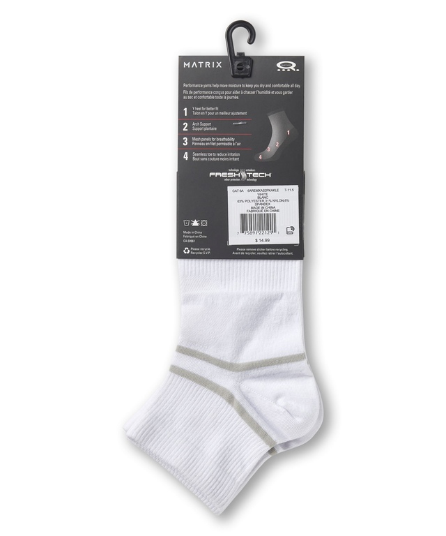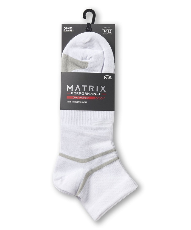 Ces socquettes sport de Matrix offrent un rembourrage et un soutien de voûte plantaire complets afin que vos pieds profitent d'un confort optimal. Elles possèdent une couture plate aux orteils et intègrent une technologie de protection antiodeurs qui vous procurent un ajustement sans frottement et une fraîcheur durable. De plus, elles sont proposées en paquet de deux paires pour en simplifier l'achat.