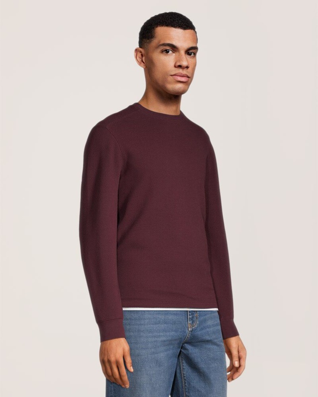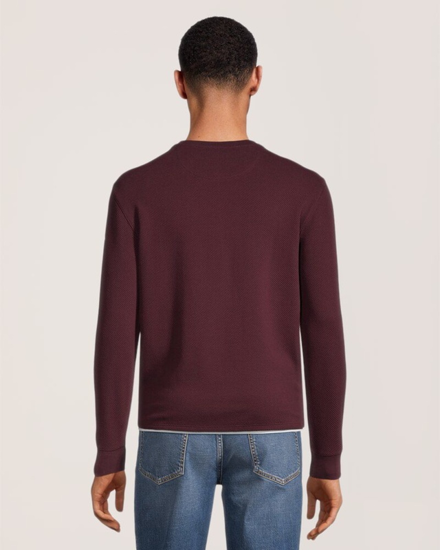 T-shirt à manches longues et col ras du cou texturé pour hommes, Denver Hayes