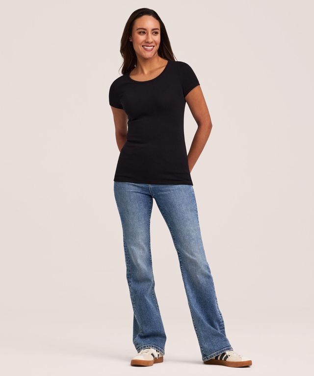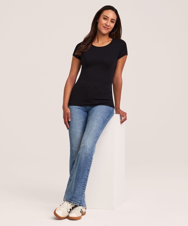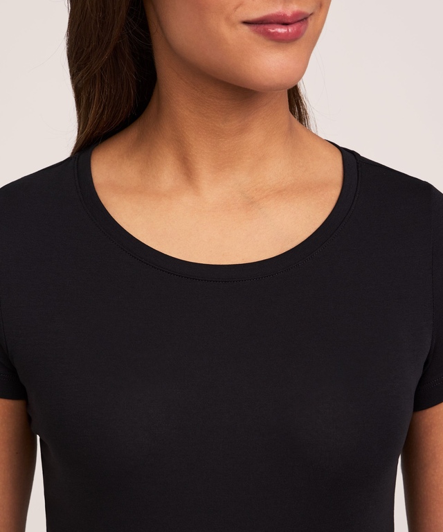 Ce t-shirt basique quotidien à col ras du cou est une sous-couche idéale. Le tissu doux et chiné est confectionné de coton perméable à l'air avec une touche d'extensibilité pour plus de souplesse; ce t-shirt est donc facile à porter et ultra confortable. Facile à agencer avec tout pantalon ou jupe, il est aussi lavable et séchable à la machine pour un entretien facile.