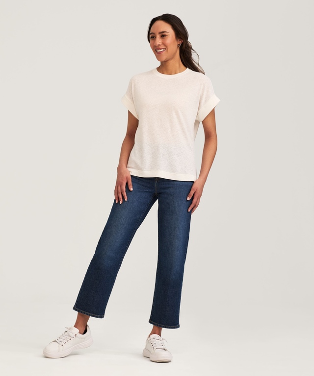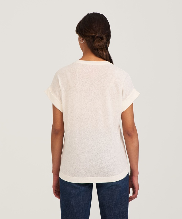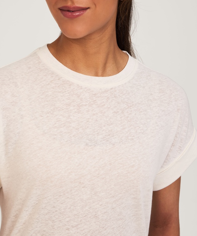 Notre t-shirt de Denver Hayes ajoute un peu plus de chic aux modèles classiques du genre, avec des manches chauve-souris agrémentées de revers. Il est en lin, une fibre naturellement perméable à l'air parfaite pour le temps estival.
