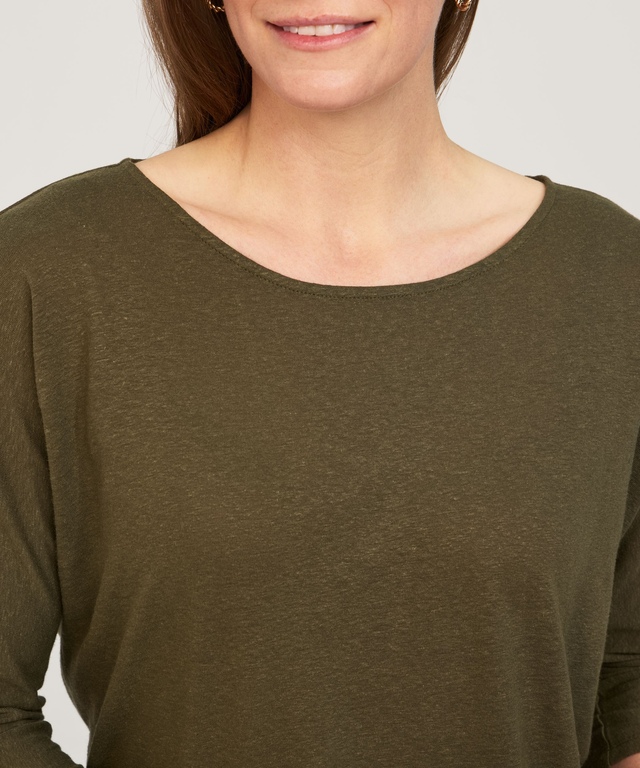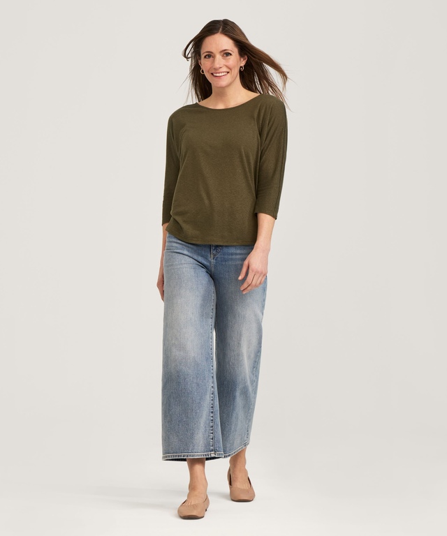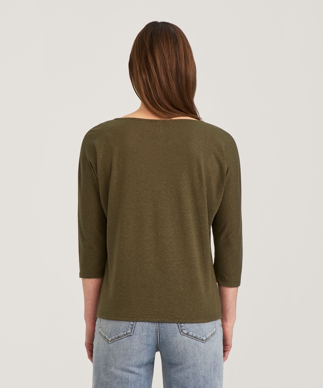 Notre t-shirt à encolure bateau de Denver Hayes est incroyablement confortable pour la saison estivale. Il est fait d'un tricot de lin naturellement perméable à l'air doux au toucher. Les manches chauve-souris de longueur 3/4 n'ont aucune couture autour des aisselles pour éviter l'irritation et le resserrement. Elles sont parfaites pour les journées chaudes ensoleillées.